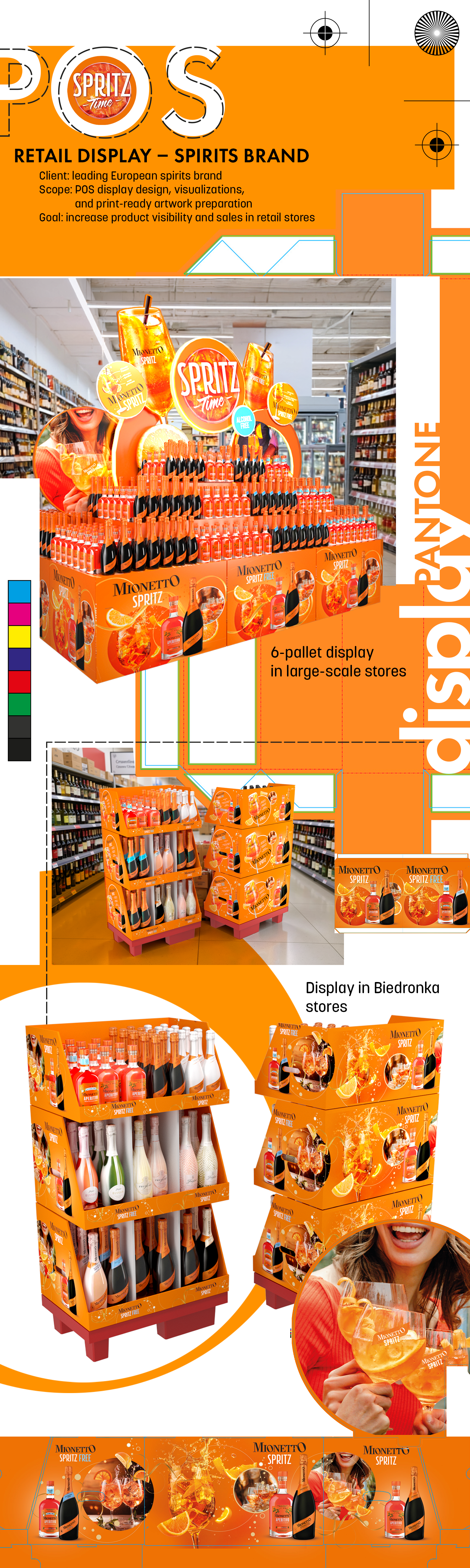 Client: Leading European spirits brand Scope: Retail POS display design, 3D visualizations, print production artwork Objective: Increase product visibility and drive sales in retail environments.